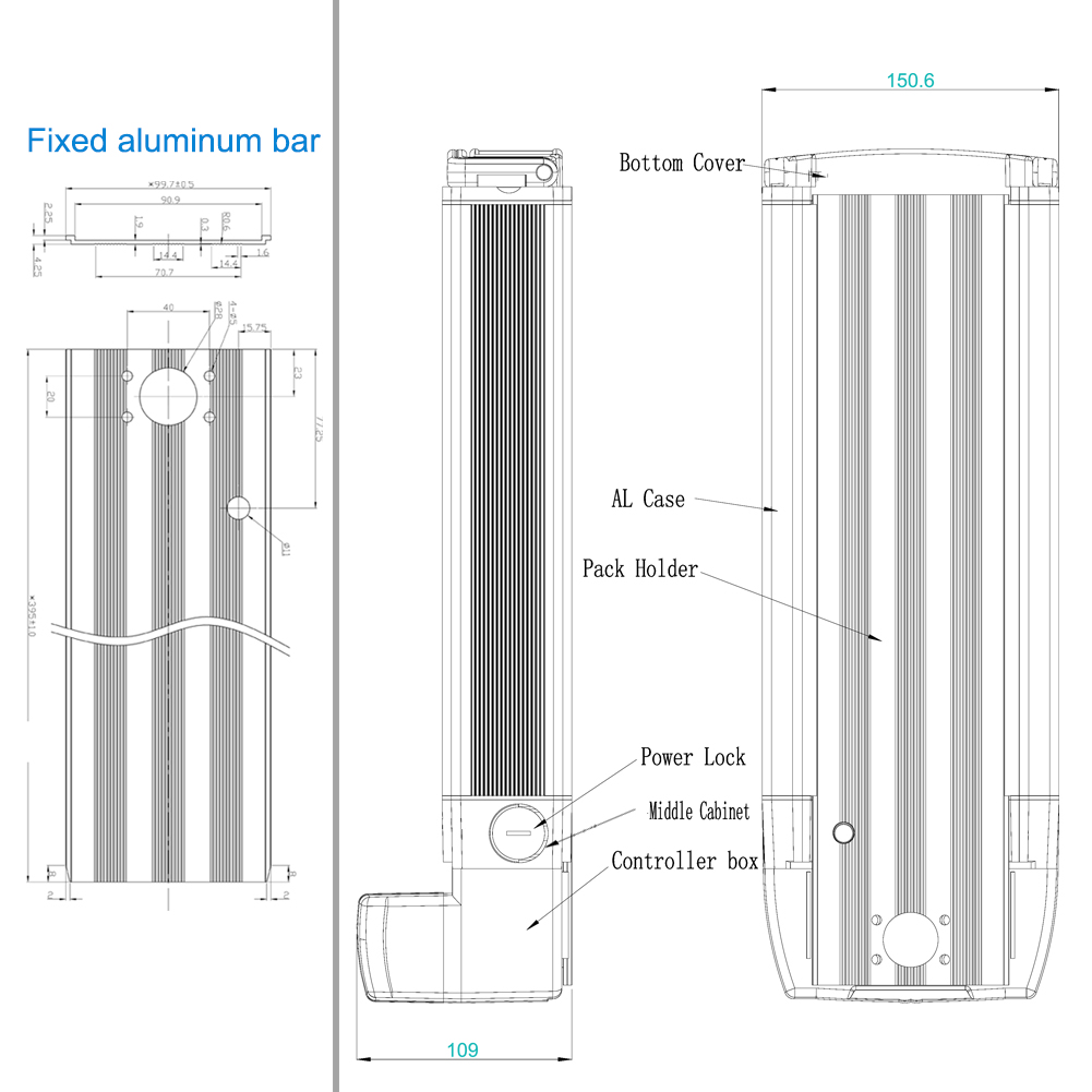 * Accu-slede + controller-behuizing, slot en 2 sleutels